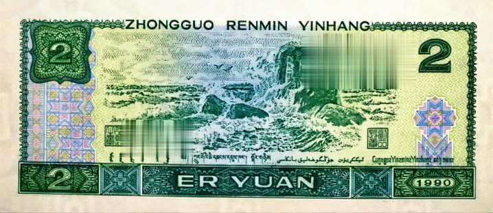 902 "南天门"暗记造成,其标识为母版暗记特征。902南天门与绿幽南同期使用团结母版,复制子版印制90版2元券,北京厂和保定厂印制,为"南天门"品种版别确奠定了坚实的基础。