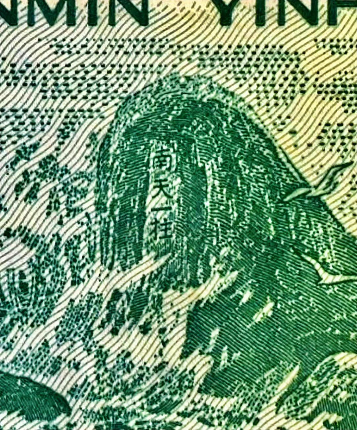 902南天门的主要亮点,是2元券后面主景南天一柱的"南"字,其结构"冂"部右上角笔墨澄莹启齿断线标识,故而得名"南天门"。